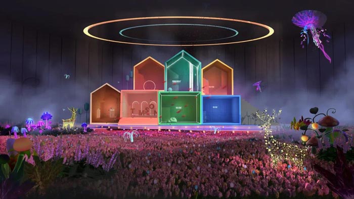 发布会视觉打造上基本都使用了大空间大场景,将所有空间视觉渲染成为演说者的背景衬托,依托于大视觉的打造,自然而然地营造出一种空间沉浸感。